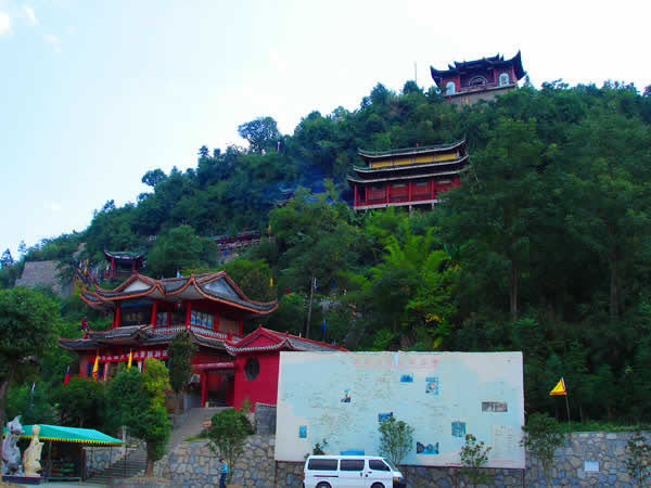 紫霞觀 紫霞觀始建于明朝嘉靖年間,近500年的歷史,在戰(zhàn)亂時(shí)期收到不同程度的破壞。紫霞觀是1992年因旅游事業(yè)的發(fā)展,教徒的信教,經(jīng)政府的批準(zhǔn),由各地的善男信女共同捐資,當(dāng)?shù)卣畵芸顢U(kuò)建起來的。道觀共有大小殿廟30余座,計(jì)5殿、3宮、2亭、2廟、1閣、八仙山、仙人足跡石、中華同心鎖等景點(diǎn)。中國著名書法家沈鵬先生為紫霞觀題寫了觀名,觀內(nèi)有國內(nèi)外著名書法家的題詞、碑刻等宗教文物,以及老子教祖講經(jīng)說法渡化圖一百余幅。