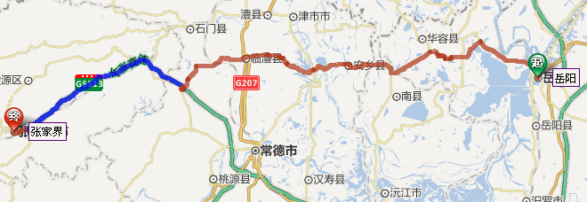 岳陽去張家界自駕車線路圖(全程部分高速)