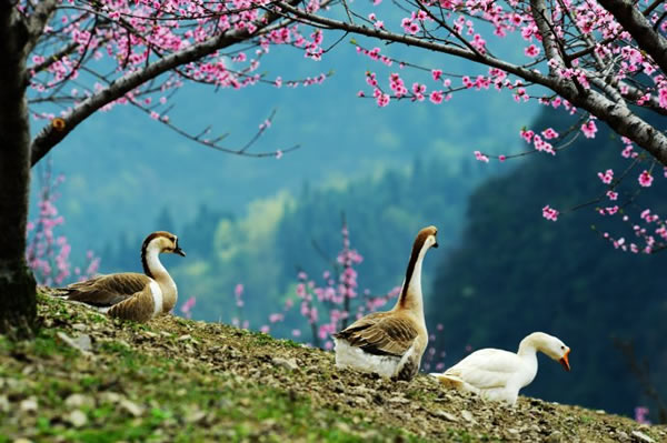 桃之夭夭,灼灼其華。據(jù)了解,天子山這處桃花仙境位于神堂灣至大觀臺(tái)之間的一農(nóng)場山丘內(nèi),面積足有一百畝以上。由于該地段剛好處于天子山至高點(diǎn),因此極目遠(yuǎn)眺,峰林風(fēng)光、桃花美景盡收眼底。而盡管農(nóng)場,則是一派鄉(xiāng)村田園風(fēng)情,一群雞鴨鵝不時(shí)穿梭在桃樹林內(nèi),一邊尋覓食物,一邊享受春光;看家護(hù)院的小黃狗迎接游客的熱情叫聲,讓人頓生回歸鄉(xiāng)愁之感。